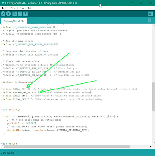 Modified code below: * The MySensors Arduino library handles the wireless radio link and protocol